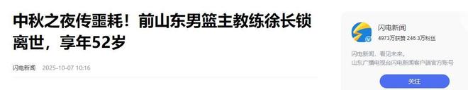 参考文献:1.红星新闻-2025-10-07——《山东篮球名宿、杨瀚森恩师徐长锁因病去世,享年52岁,杨瀚森发文悼念》2.闪电新闻-2025-10-07——《中秋之夜传噩耗!前山东男篮主教练徐长锁离世,享年52岁》