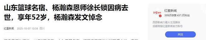 前CBA山东男篮主教练徐长锁因病离世,年仅52岁,消息一出,无数球迷与业内人士为之动容。