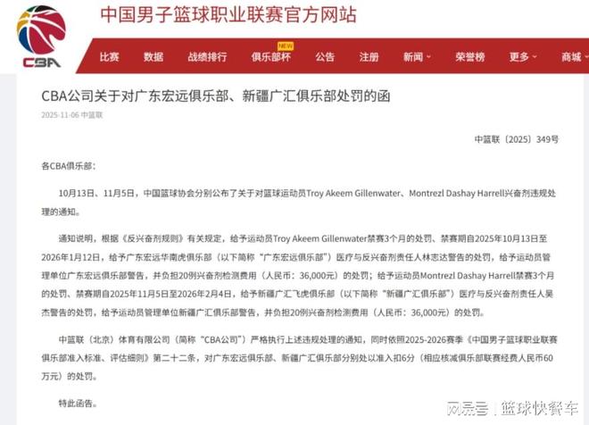 不过,很显然,他们还是低估了篮协对于该类事件的重视以及处罚力度。近日,中国篮协终于针对吉伦沃特和哈雷尔开出终极罚单。根据篮协开出的罚单显示,吉伦沃特和哈雷尔都会被禁赛三个月。这其中吉伦沃特从2025年10月13日开始执行,2026年1月12日结束。而哈雷尔则从2025年11月5日,到2026年2月4日结束。不过,由于CBA新赛季开赛延迟,他俩其实还是能够赶上新赛季大部分比赛的。