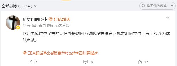所罗门的臣仆还继续表示:“两个外援目前还没见过工资”,也是引发网友的一致吐槽。