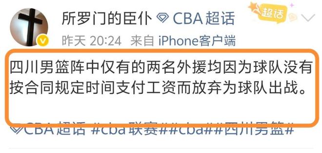 赛后,四川队仅有的两名外援也因为拖欠工资而放弃为球队出战也被推上了热搜。