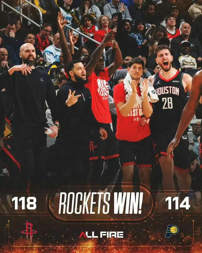 火箭以118-114击败步行者,摘下3连胜
