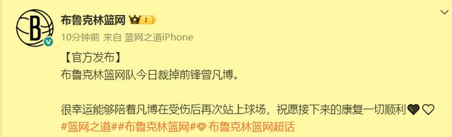8月初的时候篮网给曾凡博提供了合同,紧接着8月中旬篮网对阵太阳队的两场中国赛开始售票,9月23日双方正式签约短合同,10月12日中国赛结束,然后仅仅相隔3天,篮网官宣裁掉他。通过梳理这样的时间线,是不是很容易让人觉得篮网队签约曾凡博的目的就是为了中国赛服务呢?