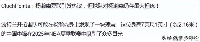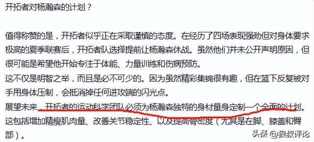 至于增重的话题,实际上杨瀚森结束了夏季联赛后,美国记者Yasmin Edañol曾报道,开拓者的运动科学团队必须为杨瀚森独特的身材量身定制一个全面的计划。这包括增加精瘦肌肉量、改善关节稳定性、以及提高骨密度(尤其是在脚、膝盖和臀部)。