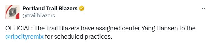 开拓者队记透露,开拓者此举是为了让杨瀚森收获更多的训练时间,并且他将在周一与湖人的比赛中重回球队。若之后杨瀚森在开拓者的出场时间有限,那么他本赛季将在两支球队之间频繁往返。
