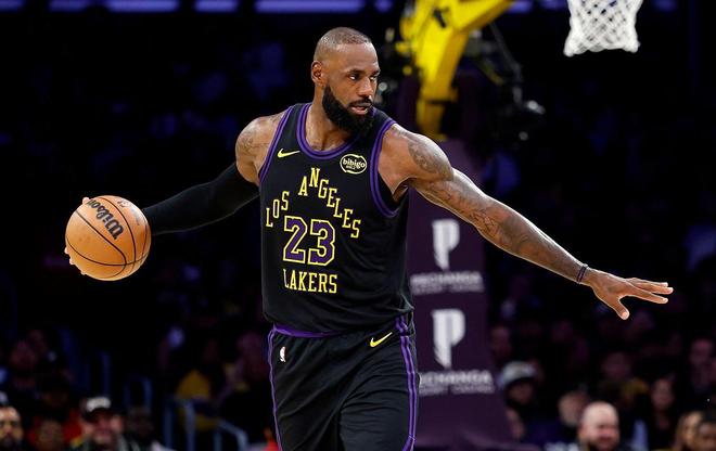 詹姆斯在第三节末尾助攻文森特投进一记压哨三分球,帮助湖人以104比93领先。