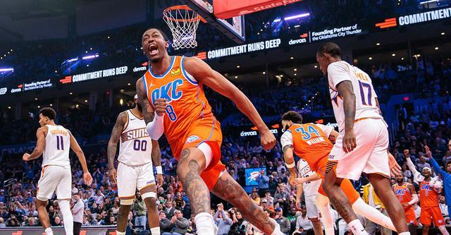 北京时间11月29日,NBA杯小组赛再战一场,俄克拉荷马雷霆主场迎战菲尼克斯太阳,雷霆一直保持着微弱领先,关键时刻亚历山大独得10分稳住局势,最终以123-119险胜太阳,豪取十一连胜的同时锁定NBA杯淘汰赛席位。