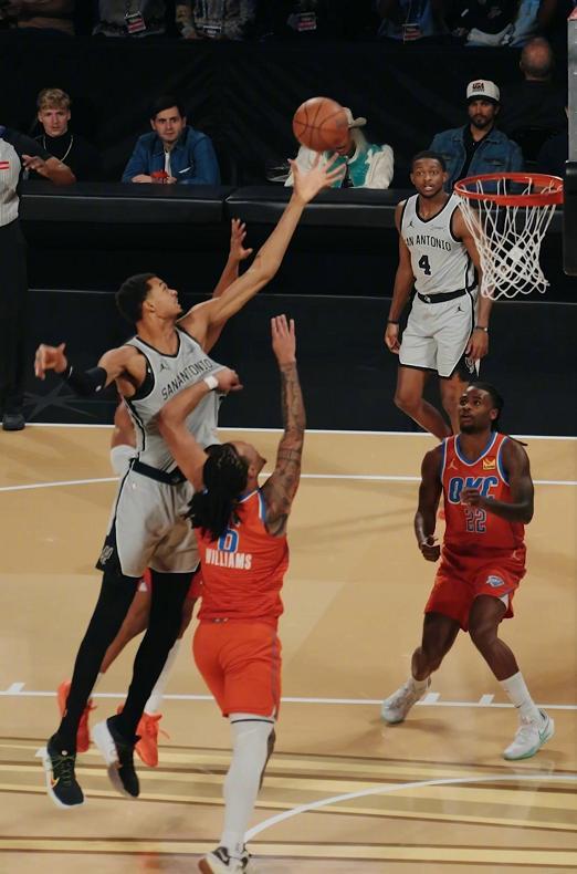 上赛季没有闯入季后赛的马刺,本赛季一飞冲天已经成为了西部最具潜力和竞争力的球队之一,1/4决赛在内线核心文班亚马缺阵的情况下,仍然靠着出色的整体表现,击败了东契奇、里夫斯和勒布朗詹姆斯领军的湖人,获得了和雷霆扳手腕,争夺NBA杯决赛名额的资格。