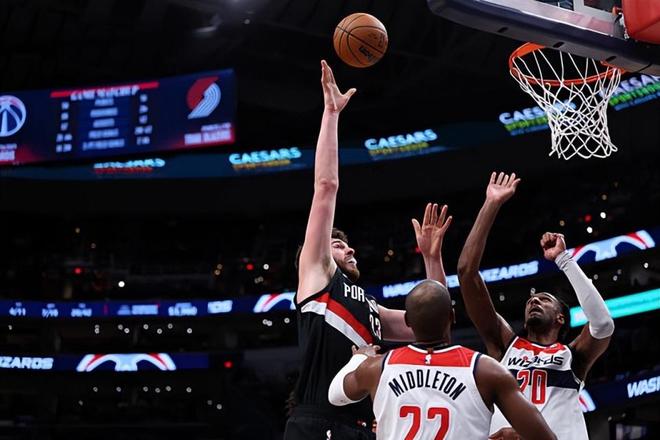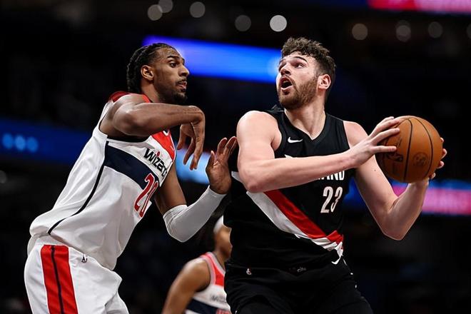本场比赛中,开拓者的先发中锋多诺万-克林根(Donovan Clingan)的表现实在是堪称灾难。克林根全场出场29分59秒,投篮17中6,三分线外3中0,罚球2中2,得到了14分20篮板2助攻1抢断1盖帽的两双数据,其中还包括了13个前场篮板,还有2次失误和3次犯规,正负值则是低到了全场最低的-17。其中13篮板不仅是克林根职业生涯的单场新高,更是刷新了开拓者队史的单场前场篮板数据。虽然数据看起来相当不错,但是从实际情况来看,克林根的进攻效率一塌糊涂,他在拿到前场篮板后并不能完成得分,没有能力给对手内线制造更多的威胁,也没有找到自己的外线投篮手感。不仅如此,克林根在防守端的表现也是令人非常失望的,他简直是被亚历克斯-萨尔(Alex Sarr)各种打爆。克林根在本场比赛中的表现实在是太灾难了,这也在很大程度上导致了球队的这场失利。