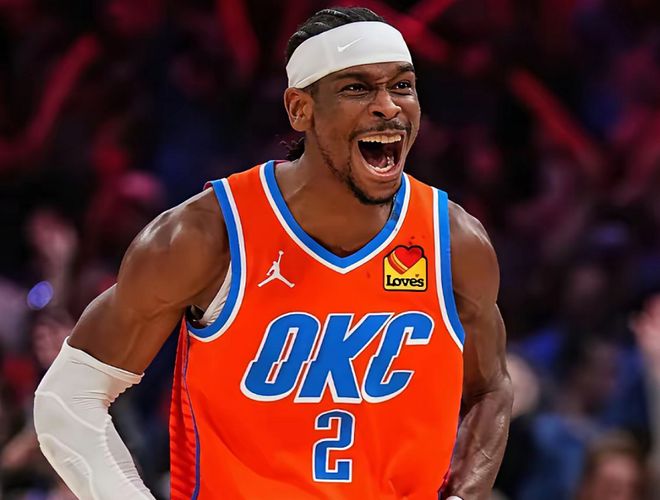 打江山容易,守江山难!作为上赛季MVP,雷霆队的SGA肩负重任,既要带领雷霆队冲击总冠军,又想蝉联MVP。新赛季,雷霆队饱受伤病困扰,但他们依然取得38胜11负的战绩,排在西部第1位,这也是联盟最佳战绩。在这个过程中,SGA的表现确实又稳又狠!SGA出战47场,场均轰下32分(联盟第2)+4.4篮板+6.2助攻+1.3抢断+1.8记三分球,投篮命中率为55.6%,三分球命中率为39%,罚球命中率为89.4%。SGA就像一台得分机器,连续119场比赛砍下20+,距离张伯伦保持的NBA历史记录(126场)仅差7场。