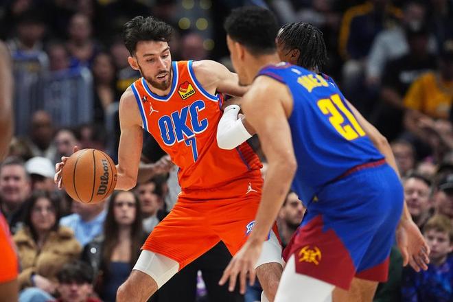 虽然雷霆杰伦威、卡鲁索、米切尔等数名核心球员同样缺阵,但深度依旧比掘金队出色得多,本场华莱斯就成为奇兵,三分11中7狂轰27分6板2助,得分与三分命中数均创新高。