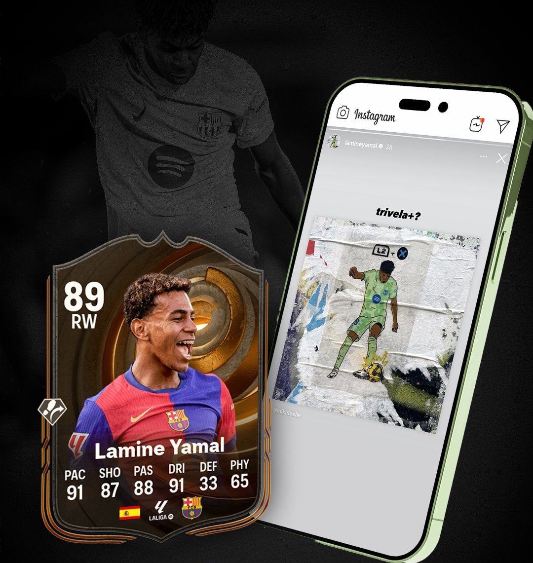 在FC25最新的以传承为主题的活动中,亚马尔与梅西、小罗一同入选,EA也听到了亚马尔的诉求,给他加装了外脚背金标。