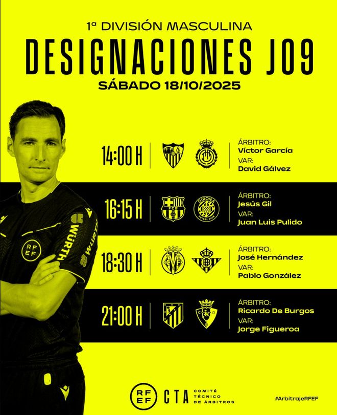 雷速体育10月17日宣 西班牙足协官方公布了西甲第9轮的部分裁判选派情况,其中巴萨与赫罗纳的比赛将由吉尔·曼萨诺执法。而上赛季国王杯决赛主裁判德布尔戈斯则将执法马竞对阵奥萨苏纳。
