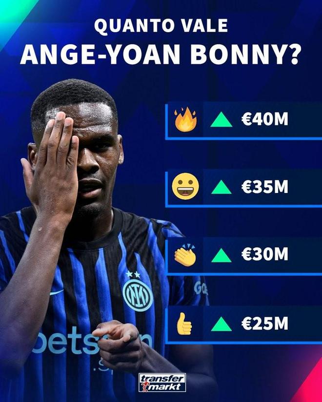 德转将对意甲球员的身价进行更新,今日德转预热国米前锋博尼身价上涨,球员最低涨至2500万欧,最高涨至4000万欧。