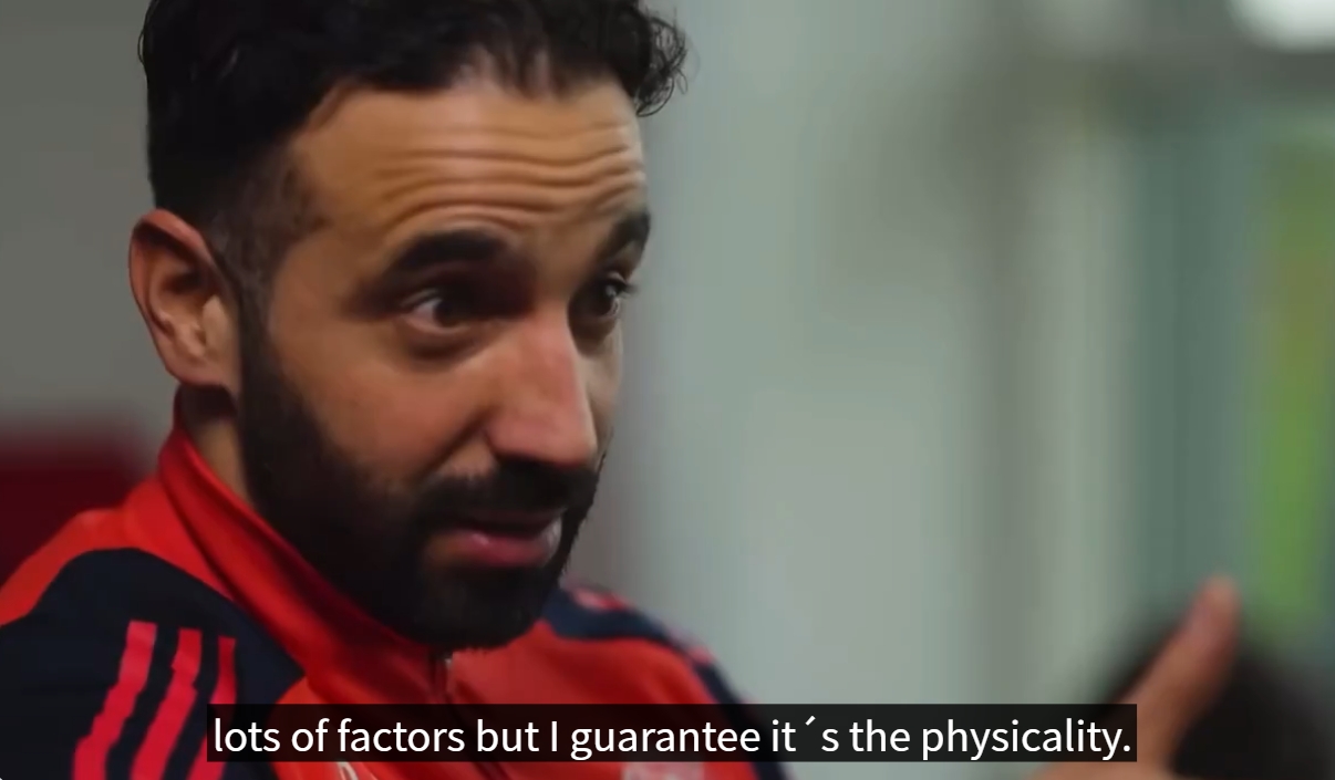 阿莫林:在这里我们对阵一些球队的时候,他们的身体素质就在那里,有时候他们不需要很多组织,直接一个长传,然后二点球,他们就拿到了。所以说如果你没有身体素质,那我们就会非常挣扎。现在安东尼在西班牙踢得好多了,这里面有很多因素,但我保证,绝对有身体因素。你可以看到我们队的一些球员,当他追上和他一样壮一样快的球员时,真的很难撞倒那个人。