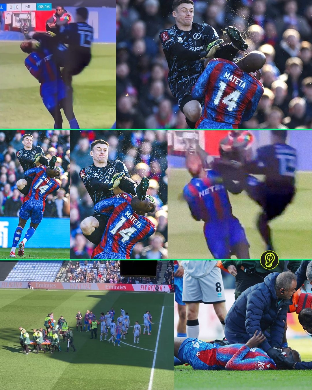03月01日报道 足总杯1/8决赛水晶宫vs米尔沃尔,开场仅6分钟,水晶宫前锋马特塔在拼抢时遭遇对方门将罗伯茨极其危险的飞踹,伤情非常严重。