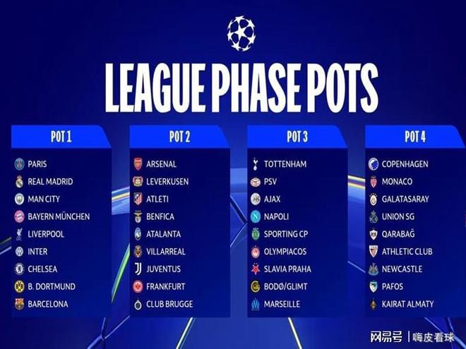 36支球队确定后,很快会进行联赛阶段的抽签仪式,跟上赛季一样,共分成四个档次,巴塞罗那搭上第一档的末班车,阿森纳和热刺刚好落入第二档和第三档,从规则来看,划分到哪个档次,其实影响并不是很大。每支球队都会分配8个非本国的不同对手,每个档次各有两队,同一联赛最多两队。