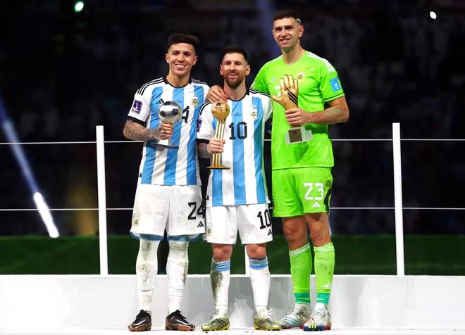 梅西理所当然地成为焦点,并获得了赛事最佳球员的金球奖,而费尔南德斯也站在了他身边的领奖台上——他被评选为2022年世界杯最佳年轻球员,领先于贝林厄姆、贡萨洛-拉莫斯和楚阿梅尼获得此项荣誉。