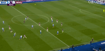 第73分钟,鲍恩倒地情况下小角度破门,西汉姆联1-0布莱顿