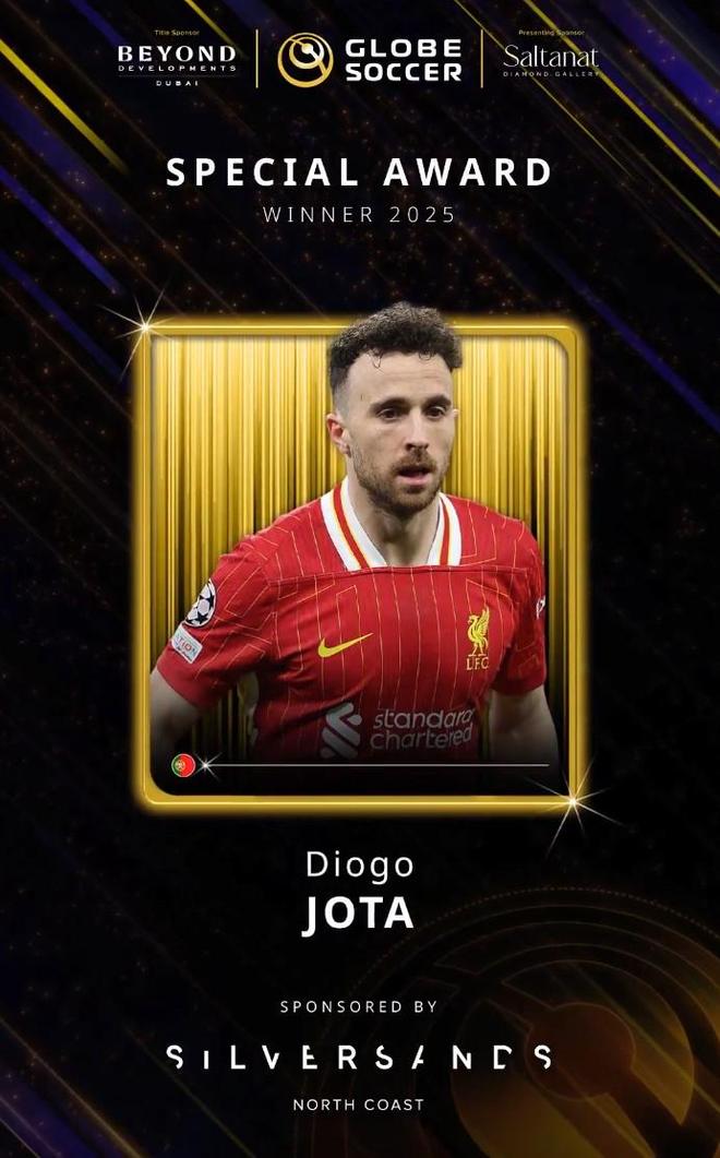 北京时间12月29日,环球足球奖官方宣布,已故的葡萄牙和利物浦球星迪奥戈-若塔获得他们评出的2025年特别奖。