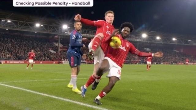 阿森纳0比0诺丁汉森林,阿尔特塔对本队被漏判点球意难平。比赛尾声,森林后卫艾纳在底线疑似用手捞球(图③),经VAR复核后未判点球。英超裁判公司解释称,“球先碰到艾纳的肩膀,而且他的手臂也处于自然位置。”阿尔特塔赛后抗议:“这个解释不对。那是一个明显的点球。对,球是先击中他的肩膀,然后他用手把球捞住了,意图非常明显。否则我就不会在这里说了。”森林主帅戴奇直斥塔哥的点球申诉“荒谬”,并表示如果这要是判罚点球,那足球比赛就干脆别踢了。