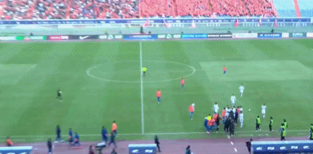 随后,双方球员发生激烈冲突,几乎所有球员都参与到冲突之中,甚至连替补球员、教练也参与到冲突之中。