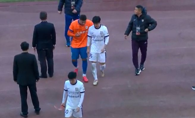 双方球员很快恢复了冷静,主裁判也随即吹响上半场结束的哨声,并且向克雷桑、杨梓豪出示黄牌。走回更衣室时,克雷桑搂着杨梓豪交流。