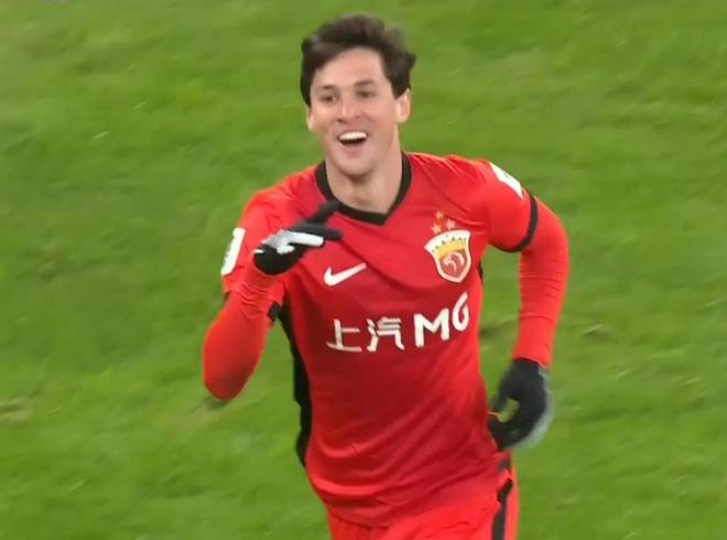 第57分钟,海港全力进攻终于取得成效:维塔尔在中路带球后,忽然起脚,皮球画出漂亮弧线,世界波!海港扳平比分。