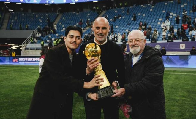 原来,就在中超第30轮海港客场对阵大连英博那天,穆斯卡特的儿子专门从澳大利亚来到现场目睹了父亲率队夺冠的激动场面,赛后还跟球队一同庆祝夺冠,父子两人还进行了合影留念,之后随队搭乘同一班航班返回上海。