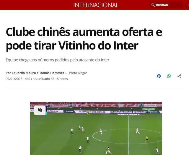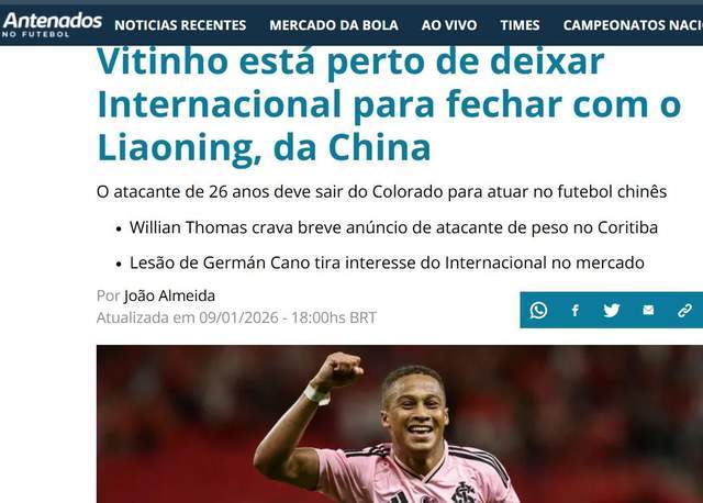 大反转!巴西多家媒体最新爆料,中国俱乐部辽宁铁人接近从巴西国际签下外援维蒂尼奥,而之前一度传出辽宁追了3个月的维蒂尼奥,可能谈判失败。这样一来,中超即将迎来当今最大牌的巴西外援了。